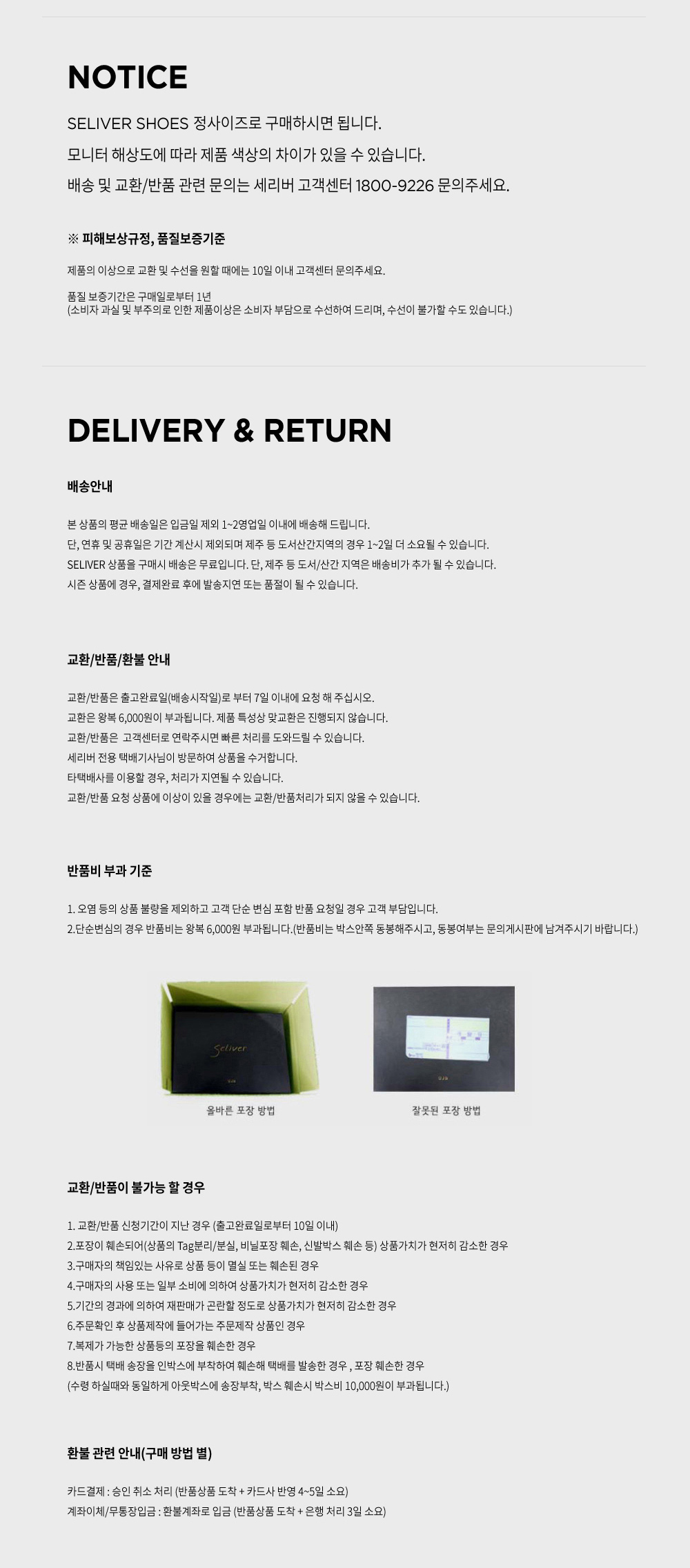 ● 단순변심의 경우 반품비는 왕복​ 6,000원 부과됩니다. (반품비는 박스안쪽 동봉해주시고, 동봉여부는 게시판에 남겨주시기 바랍니다.