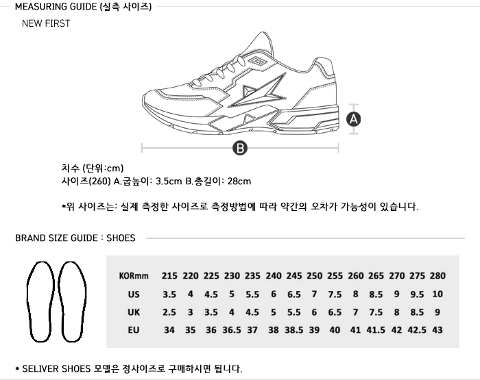 예 : 235와 240주문시 모두 240mm가 발송되며 235mm 주문의 경우 깔창 아래 보조깔창을 끼워드려 신발을 작게 만들어 보내드리고 있습니다.