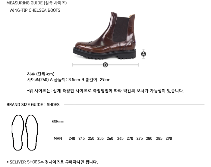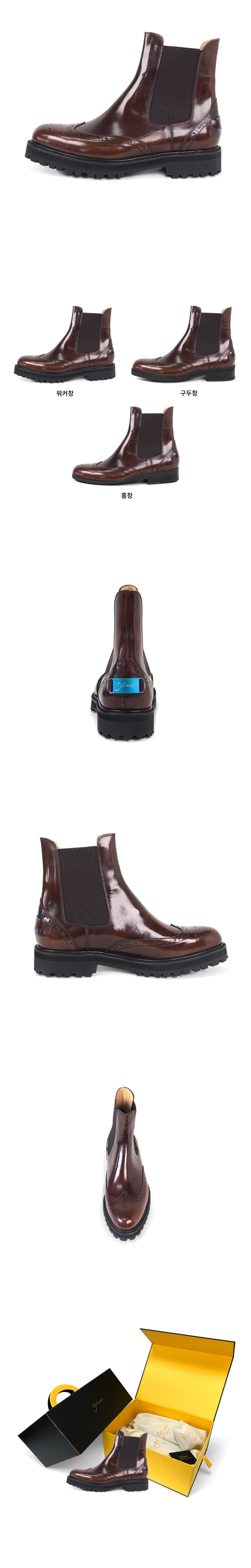 SELIVER WING-TIP CHELSEA BOOTS BR제품은 최고급 소가죽 어퍼로 특유의 편안함을 추구하면서도 특별함을 위해 디자인되었습니다.